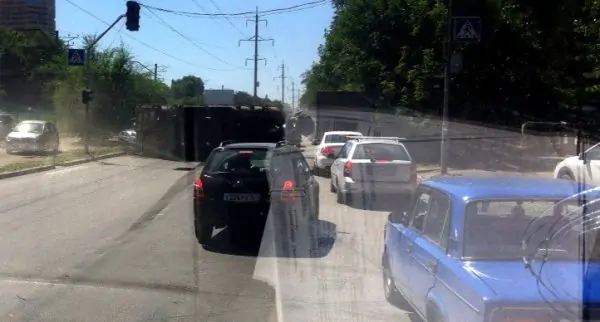 В среду, 6 июля, в Ростове на Нансена от «Камаза» отцепился прицеп, который от небольшого удара об бордюр перевернулся, перекрыв проезжую часть. Об этом в соцсети сообщили очевидцы. Кроме этого, из перевернувшегося прицепа по улице рассыпалась металлическая стружка.