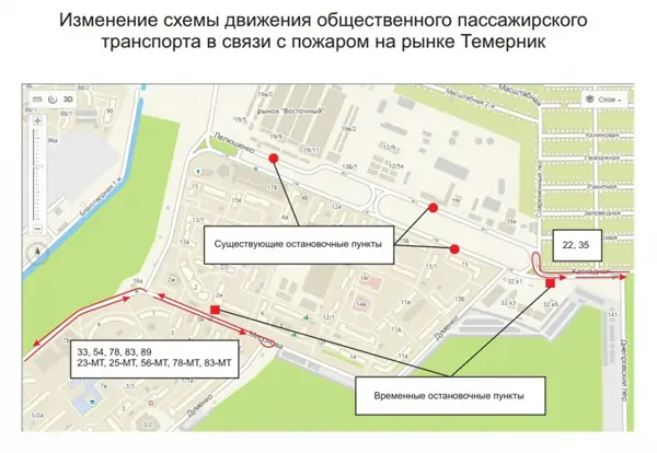 В связи с произошедшим пожаром и перекрытием дорожного движения, схема движения автобусных маршрутов изменена: