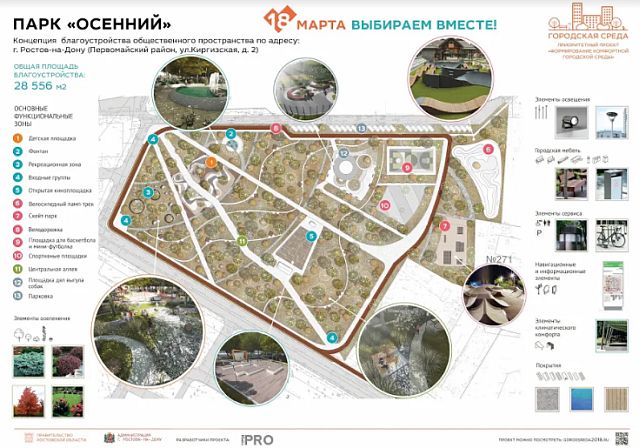 Напомним, что парк «Осенний» наравне с парком «Собино» и Северным сквером стал одним из тех, которые ростовчане выбрали для благоустройства. Начать работы подрядчики должны были ещё в начале июня, а к декабрю — завершить. Но, по словам главы администрации Ростова Виталия Кушнарёва, денег на все выбранные жителями парки до конца 2018 года не хватило, поэтому их благоустройство перенесли на 2019-й.