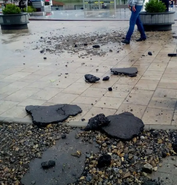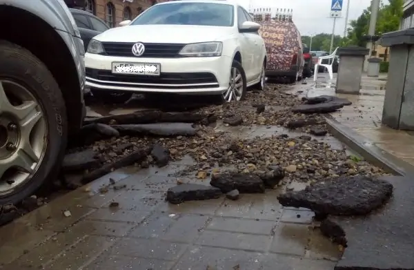 Сильный дождь, прошедший в Ростове днём в среду, 1 июня, размыл асфальт на набережной.