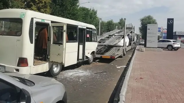 По предварительным данным отдела пропаганды УГИБД региона, 47-летний водитель маршрутки № 113 не справился с управлением и столкнулся с автовозом, припарковавшимся вдоль дороги.