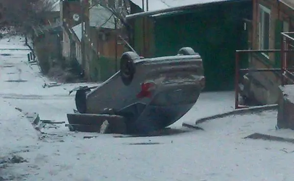 «Твориться беспредел! Надоело! Каждую зиму с горы летают машины. Ситуация угрожает жизни людей, тем более рядом школа №83 и огромная детская площадка. Приходят люди с администрации ЖД района, рассказывают сказки и уходят, в итоге третью (!!!) зиму никто не шевелится. Это только два автомобиля, в которых чуть не погибли сотрудники полиции в 2015 году, и в 2016 году 04.12.16 чуть не погибли сотрудники скорой помощи! Когда же вы поставите знак, сделаете ограждение?», — возмутился ростовчанин и подкрепил свои слова фотографией с места происшествия.
