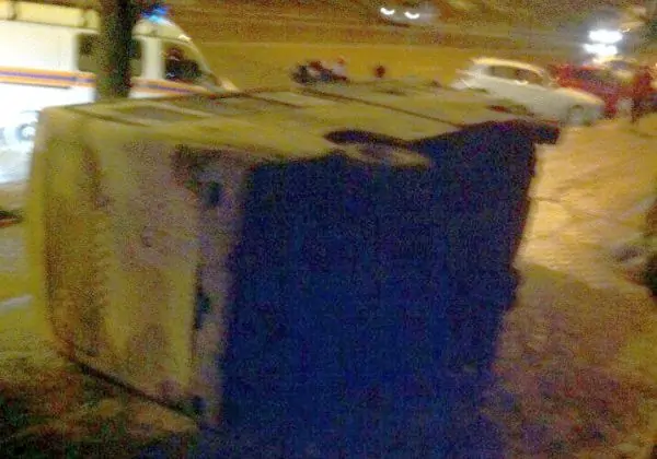 «В центре города на Будённовском, возле Сhester Pab, перевернулась маршрутка. В маршрутке был только 62-летний водитель. Он жив. У маршрутки отказали тормоза. Дабы избежать столкновения с машинами, в которых находились люди, водитель выехал на пустой тротуар. К 23.30 авто подняли, — написал в соцсети Андрей Пируцкий и поделился фотографиями с месте происшествия.