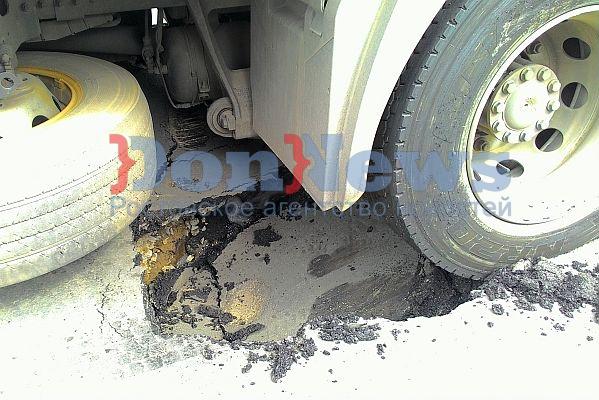 Дорожно-транспортное происшествие на Гвардейской площади в Ростове случилось в понедельник, 29 июня, около 14:30. Под многотонной фурой Mercedes, гружённой молочной продукцией, провалился асфальт. Водитель автомобиля в разговоре с корреспондентом donnews.ru так описал ситуацию: