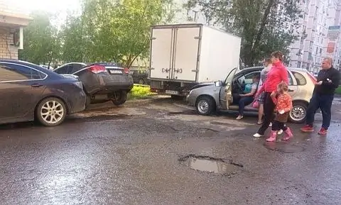 Но девушка отреагировала несколько иначе, чем ожидалось: испугавшись, она нажала педаль газа и въехала в припаркованный Chevrolet Cruze. От удара иномарка съехала с дороги и оказалась в прямом смысле слова в подвешенном состоянии.