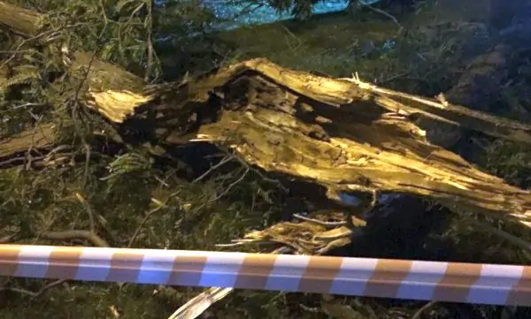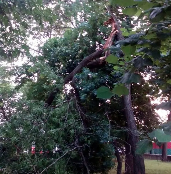 «Одна девочка успела выскочить, а другую свалило с ног крайними ветками. На место прибыли скорая и полиция. Все целы. На улице ни ветерка», — написала в соцсети Любовь Д.