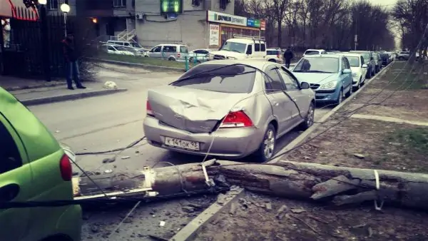 Ещё одна машина оказалась под рухнувшим столбом недалеко от Ростовской областной больницы.