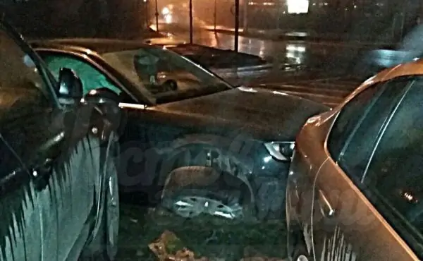 После удара Daewoo Nexia отбросило на тротуар, где она врезалась в столб. А у BMW во время аварии вырвало колесо.