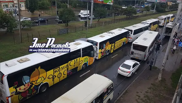В субботу, 2 сентября, в Ростове произошло массовое ДТП. Как сообщают очевидцы, на улице Малиновского в районе дома № 23 столкнулись 4 автобуса, перевозившие детей. Транспортные средства двигались колонной, всего их было шесть.