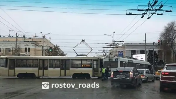 В пятницу, 26 января, в Ростове на пересечении Садовой и Будённовского столкнулись трамвай и троллейбус. ДТП произошло около 10:30.