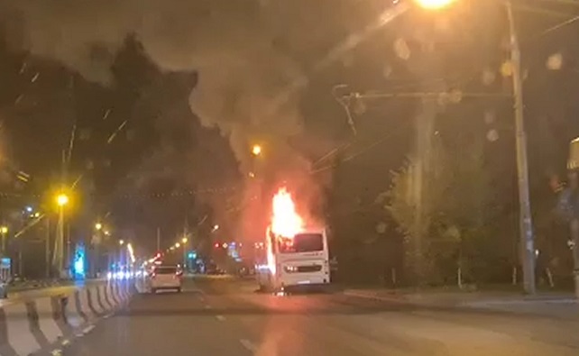 На видео видно, что горит задняя часть автобуса. Проехать мимо горящего автобуса автомобилисты старались как можно быстрее, огибая его по дуге, так как боялись взрыва.