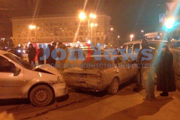 Авария с участием трамвая и шести автомобилей произошла на Театральной площади в Ростове в среду, 4 февраля, около семи часов вечера.