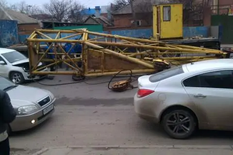 Сегодня около 14:00 в Ростове на пересечении улиц Доватора и Мадояна строительный кран упал на Volkswagen.