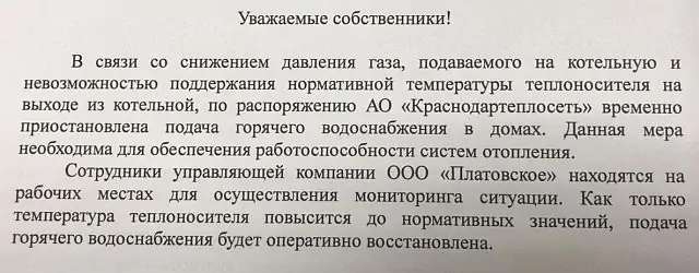 Когда будет восстановлено горячее водоснабжение, не уточняется.