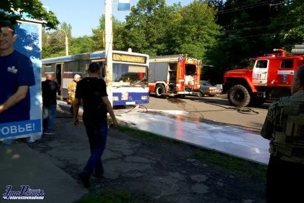 Загорелось заднее левое колесо. Водитель ехал в парк, поэтому пассажиров в салоне не было. Очевидцы также сообщают о громком хлопке, из-за которого в окрестных дворах сработали сигнализации припаркованных авто.