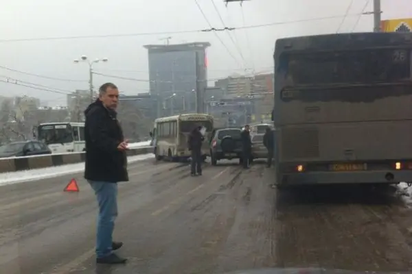 В Ростове на Стачки произошло массовое ДТП. Около 11:05 в районе дома №21 по переулку Виражному столкнулись Hyundai Accent, Chevrolet Niva, «ВАЗ-2110», Lada Priora и маршрутка №34.