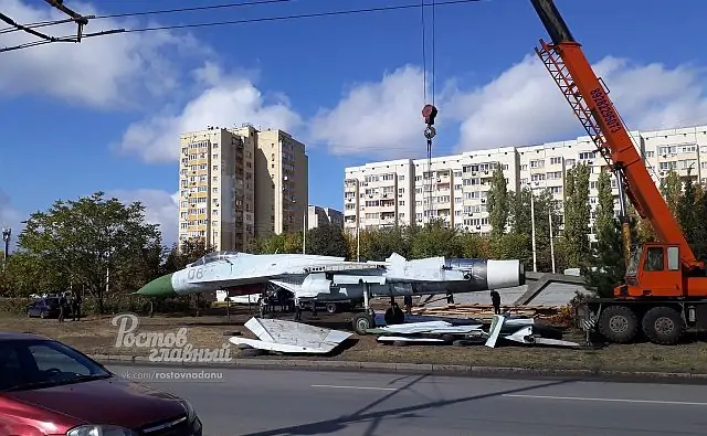 Ранее боевая машина принадлежала военно-лётному полку в Крымске. Установить самолёт в Ростове решили в честь 75-летия создания 4-й Краснознаменной армии ВВС и ПВО и 80-летия Октябрьского района