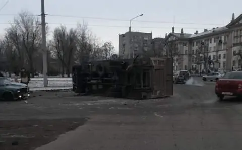 По словам очевидца, Toyota Mark II двигалась по улице Шеболдаева и на светофоре врезалась в мини-грузовик Hyundai. Удар оказался такой силы, что большегруз перевернулся, перегородив полосы движения.