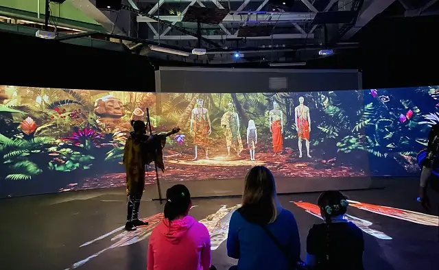 Гостям театра-сафари вместе с отважной девочки Эйо, которая умеет говорить с животными, предстоит спасти от исчезновения целое племя. В этом опасном путешествии им будут помогать могучий слон, молниеносный гепард и мудрая птица. Все вместе они оживят волшебное дерево и спасут аборигенов. Каждый зритель сам станет участником этой истории. Огромный панорамный экран и технология голограмм создаёт эффект полного погружения в джунгли.