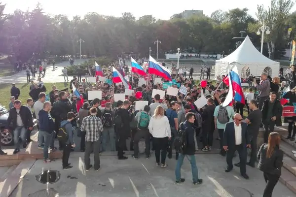 В толпу пикетирующих зашла представитель администрации Пролетарского района Ростова и заявила, что акция молодых людей незаконная и потребовала её прекратить.