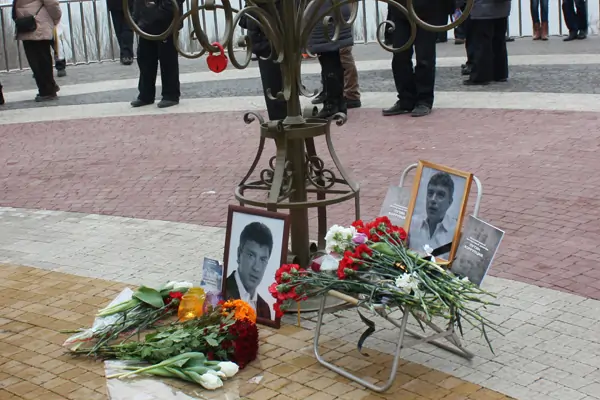 Портрет Немцова установили сначала возле дерева любви, на которое ростовским молодожёнам предлагается вешать замки в день свадьбы. Сюда же возлагали цветы и ставили зажжённые свечи.