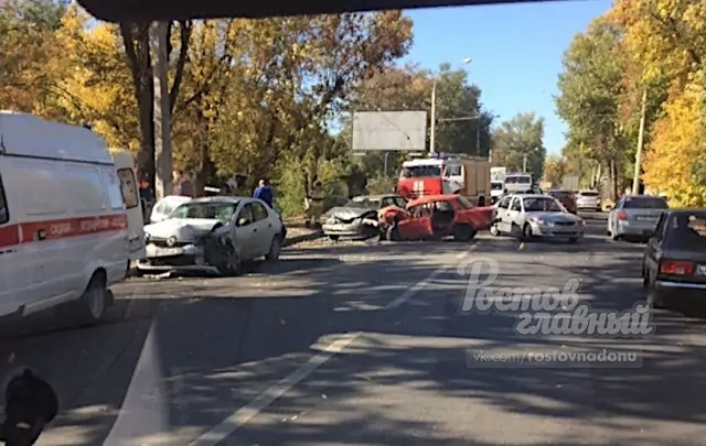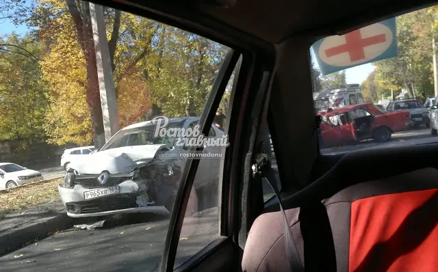 На улице Таганрогской в Ростове 12 октября около 11:30 столкнулись Renault Logan, ВАЗ-2101 и ВАЗ-2114.