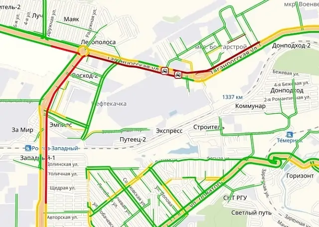 Из-за аварии на Таганрогской образовалась огромная пробка в обе стороны. Она растянулась от улицы Малиновского на несколько километров.