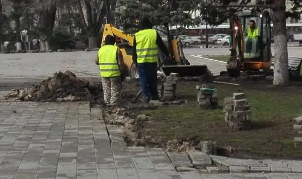 В Ростове начался первый этап капитального ремонта площади Советов. С раннего утра 25 марта рабочие приступили к демонтажу бордюров по всему периметру площади. В скором времени на их мете появятся новые ограждения.