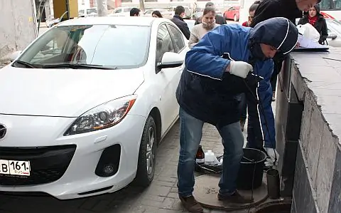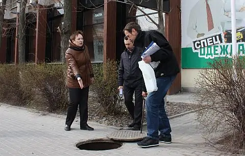 Тем временем эксперты с помощью специального оборудования берут из грязного люка пробы сточных вод. К рейду, похоже, подготовились — внутри люк заметно чище, чем был накануне.