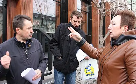 Тем временем все образцы загружены в машину, автобус везёт экспертов и журналистов к следующей точке. Здесь абонент — собственник, который сдаёт в аренду помещения под офис, магазин промтоваров и ресторан «Рис».