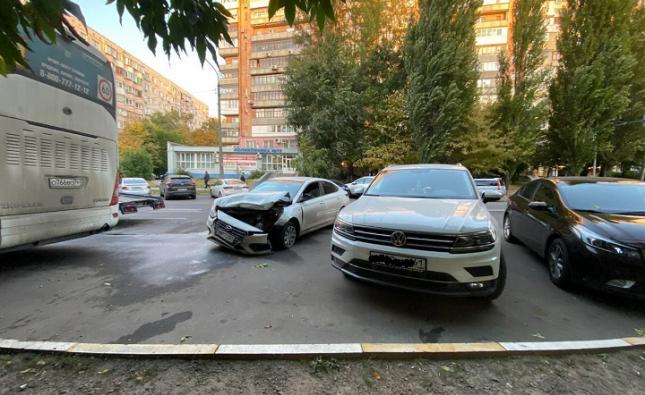 В Ростове в среду, 6 октября, вблизи дома № 68 по Зорге, напротив ТЦ «Талер», произошла массовая авария с участием пяти автомобилей. По предварительным данным отдела пропаганды регионального УГИБДД, водитель Hyundai Solaris столкнулся с Toyota Prius, которая двигалась в попутном направлении.