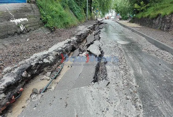 Как оказалось, по одной стороне улицы строители уже сняли все старые бордюры и навезли тонны песка. Сильные потоки воды смыли и бордюры, и старый асфальт, и все строительные материалы. Песок буквально поплыл вниз к Береговой вместе с потоками дождя.