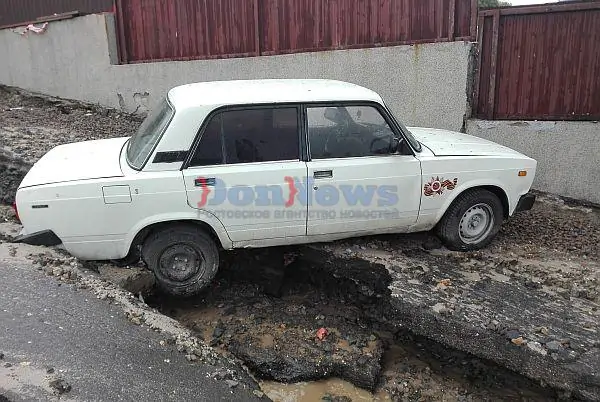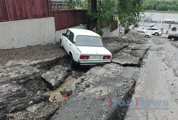 В социальных сетях ростовчане делятся своими фотографиями автомобилей, оказавшихся во власти стихии. Асфальт вымыло прямо из-под колёс машин.