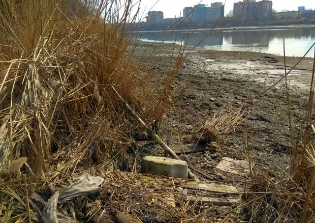На оголившимся дне водохранилища ростовчане увидели многочисленные стеклянные бутылки, шины от машин, различный пластик, сломанный ноутбук и даже огромную пуговицу с надписью «Глория Джинс».