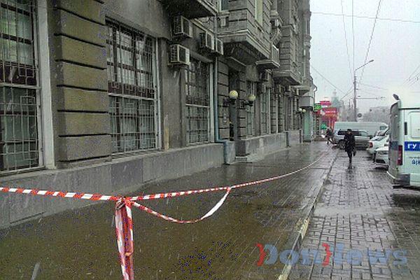 Тротуар перед фасадом здания ОП № 4 до сих пор огорожен. Фото donnews.ru