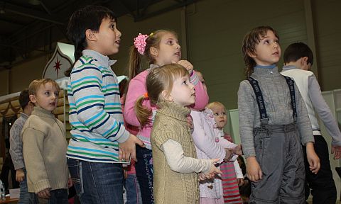 Делать это было не так-то просто, потому что малыши-зрители просто оккупировали сцену и ни на шаг не отпускали волшебников.