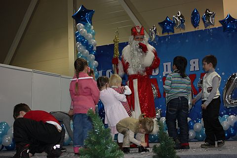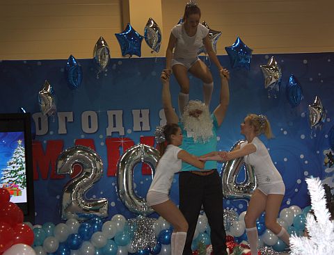 Потом был смотр талантов. Дедушки пели, читали рэп, водили хороводы с малышами-зрителями, показывали фокусы... А один Дед Мороз вдруг по-молодецки скинул шубу и оказался в спортивных штанах и майке. Он бойко прокричал, что он вполне спортивный дед и что это весьма важно перед Олимпиадой в Сочи. Потом он вызвал своих помощниц-снежинок, девушки-снежинки выбежали на сцену и вместе со спортивным дедом стали исполнять акробатические номера.