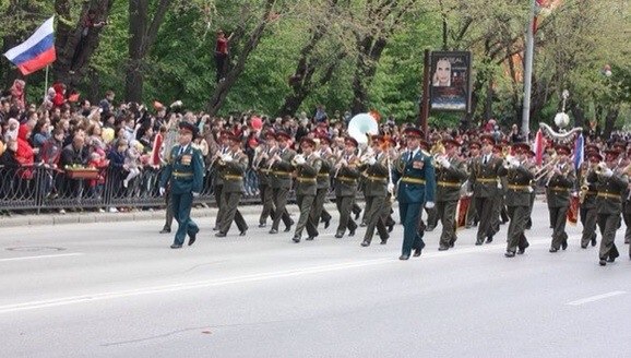 Сотни ростовчан собрались в окрестностях Театральной площади: на саму площадь попали далеко не все зрители. Многие заняли позиции вдоль Большой Садовой, чтобы оттуда наблюдать за движением парада, и были очень расстроены, когда рота барабанщиков от объединения ВВС и ПВО ЮВО, знамённые группы с государственным флагом Российской Федерации, копиями Знамени Победы и Знамени Вооруженных Сил РФ, рота почётного караула в форме трёх видов ВС, парадный расчёт управления ЮВО, сводные роты и батальоны соединений и частей округа и другие пешие войска свернули с Театральной площади прямиком на Театральный проспект, минуя основную массу зрителей.
