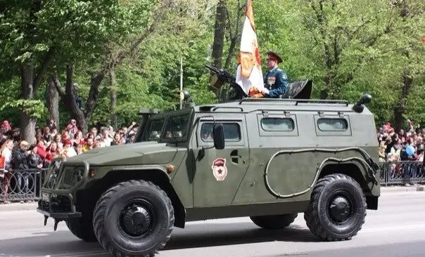 В параде приняли участие бронеавтомобили «Тигр», БТР-82АМ, зенитные ракетные комплексы «Оса», зенитные ракетно-пушечные комплексы «Панцирь-С1», пусковые установки зенитной ракетной системы С-300, оперативно-тактический ракетный комплекс «Искандер-М». Кроме того, в составе механизированной колонны прошли подвижный береговой ракетный комплекс (ПБРК) «Бастион» и артиллерийская система береговой обороны «Берег».