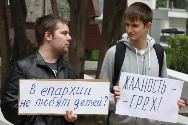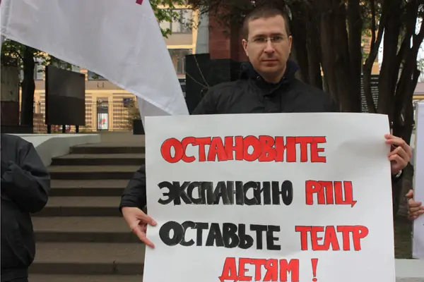 — Меня сам факт возмутил. У меня двое детей, я хожу с ними в театр. И это всё выглядит очень странно и неестественно. И я считаю что в таких ситуациях молчать нельзя. Очень много нелогичного происходит, когда нечего есть — давят овощи, когда дешевеет нефть — дорожает бензин, и когда церковь забирает у детей здание — это тоже очень странно.