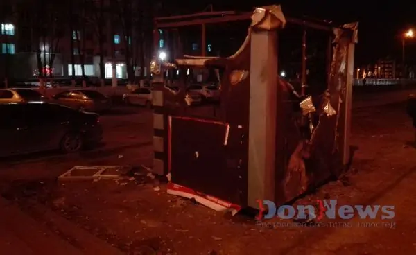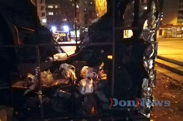 Сгоревший ларёк, и без того безобразный, постепенно превращается в свалку. Нечистоплотные ростовчане без зазрения совести бросают пакеты с мусором внутрь бывшей торговой точки.