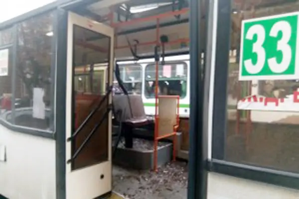 Как сообщает Instagram-сообщество @rostov_roads, после удара осколки разбитых оконных стёкол посыпались в салон автобуса, но, к счастью, никто из пассажиров не пострадал.