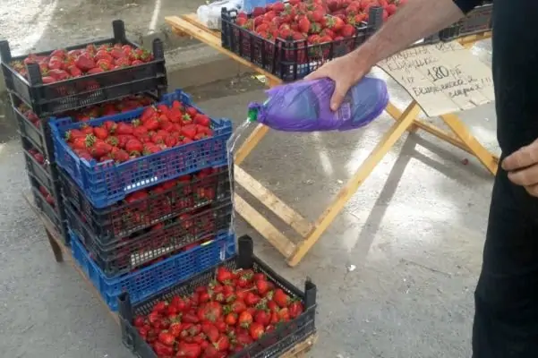 В результате, комиссия изъяла около 70 килограммов фруктов — 50 килограммов клубники и 20 килограммов черешни. Уничтожить товар было решено на месте, залив фрукты спиртом.