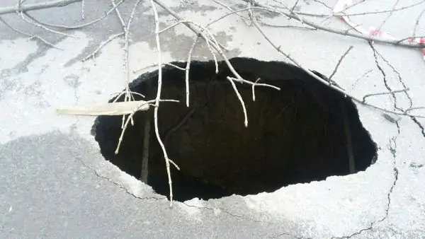 По словам девушки, из-за провала в асфальте жильцы дома № 6 не могут выехать со двора.{{voter}}