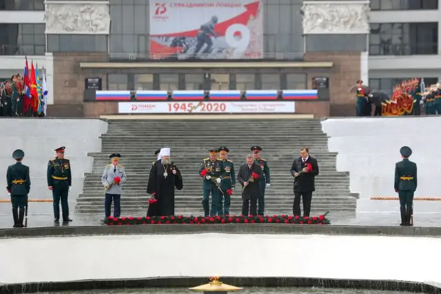 Началось празднование 9 мая в Ростове с возложения гирлянды Славы к мемориалу Воинам — освободителям Ростова. Губернатор Ростовской области Василий Голубев, председатель Законодательного собрания региона, командующий войсками ЮВО генерал-полковник Александр Дворников и митрополит Меркурий, принявшие участие в возложении гирлянды, почтили память погибших героев минутой молчания.