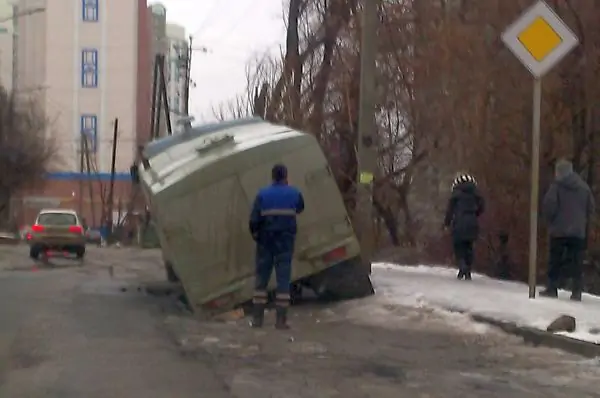 Последние два дня сообщения о том, что где-то в яму провалилась машина, поступают одно за другим. К примеру, утром 21 января в яму на улице Республиканской провалился «Камаз» «Водоканала», а днём ранее машина угодила в яму на улице Магаданской.