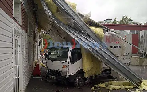 — Крыша упала на крышу одноэтажного офисного здания и на припаркованные рядом автомобили. По счастливой случайности никто не пострадал, все были внутри здания, а на площадке не было клиентов и машин на погрузке. Рядом со зданием были припаркованы легковые автомобили, всех их спас от повреждения грузовичок Nissan, который принял на себя удар стихии, — рассказал журналисту donnews.ru сотрудник предприятия Владимир.