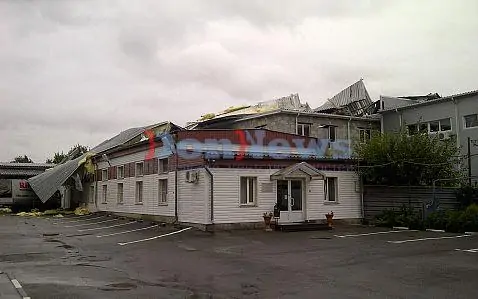 Сильный ветер, бушующий в Ростове, вырвал и унёс целиком крышу со склада одного из предприятий. Летала крыша недолго и приземлилась на территории торгово-выставочного центра предприятия «Комплекс-1» по адресу: переулок Жлобинский, 18б.
