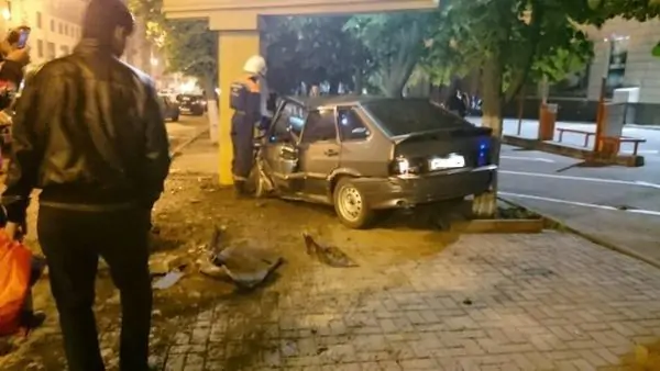 В результате, «четырнадцатую» выбросило на тротуар, где она врезалась в опору рекламного щита.