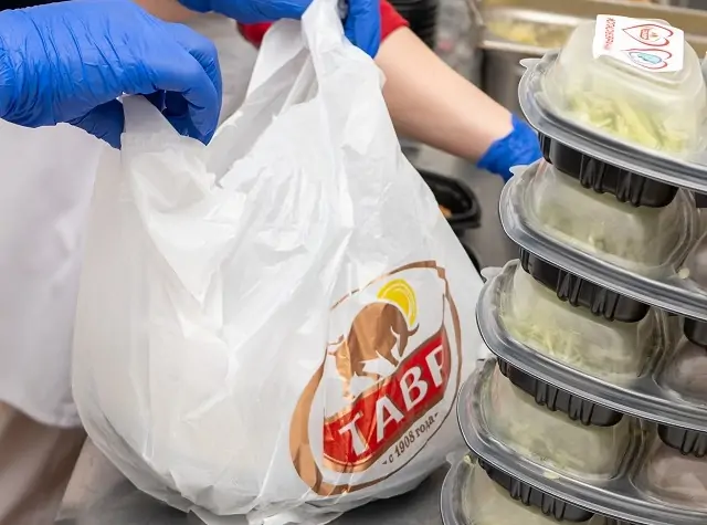 Горячие обеды готовят повара пищевого комбината завода «Тавр». В набор входит второе, салат, бутерброды с тавровской продукцией. По словам Татановой, обеды будут поставляться ежедневно.